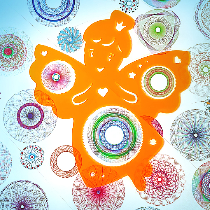 Спирограф был у меня в детстве.. Волшебрики - немного видоизмененный вид спирографа. Купила Мишку сыну на вырост.. Сама сижу рисую, а сын раскрашивает мои творения! Даже про мультики забыли. Спасибо!
