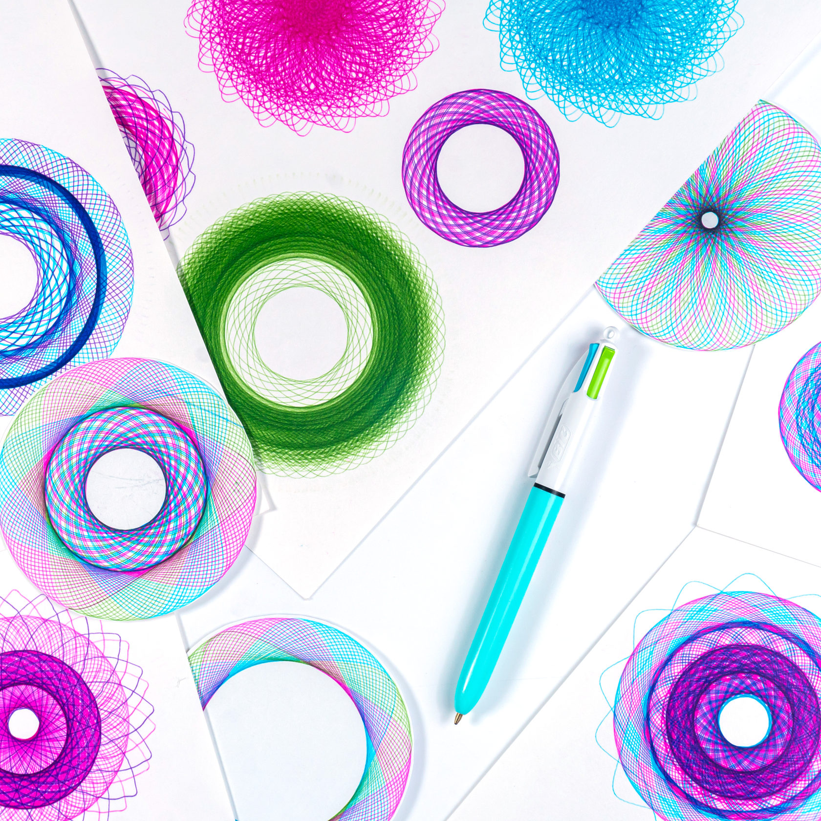 прекрасная французская 4-х цветная ручка BIC, рисующая необычными цветами;